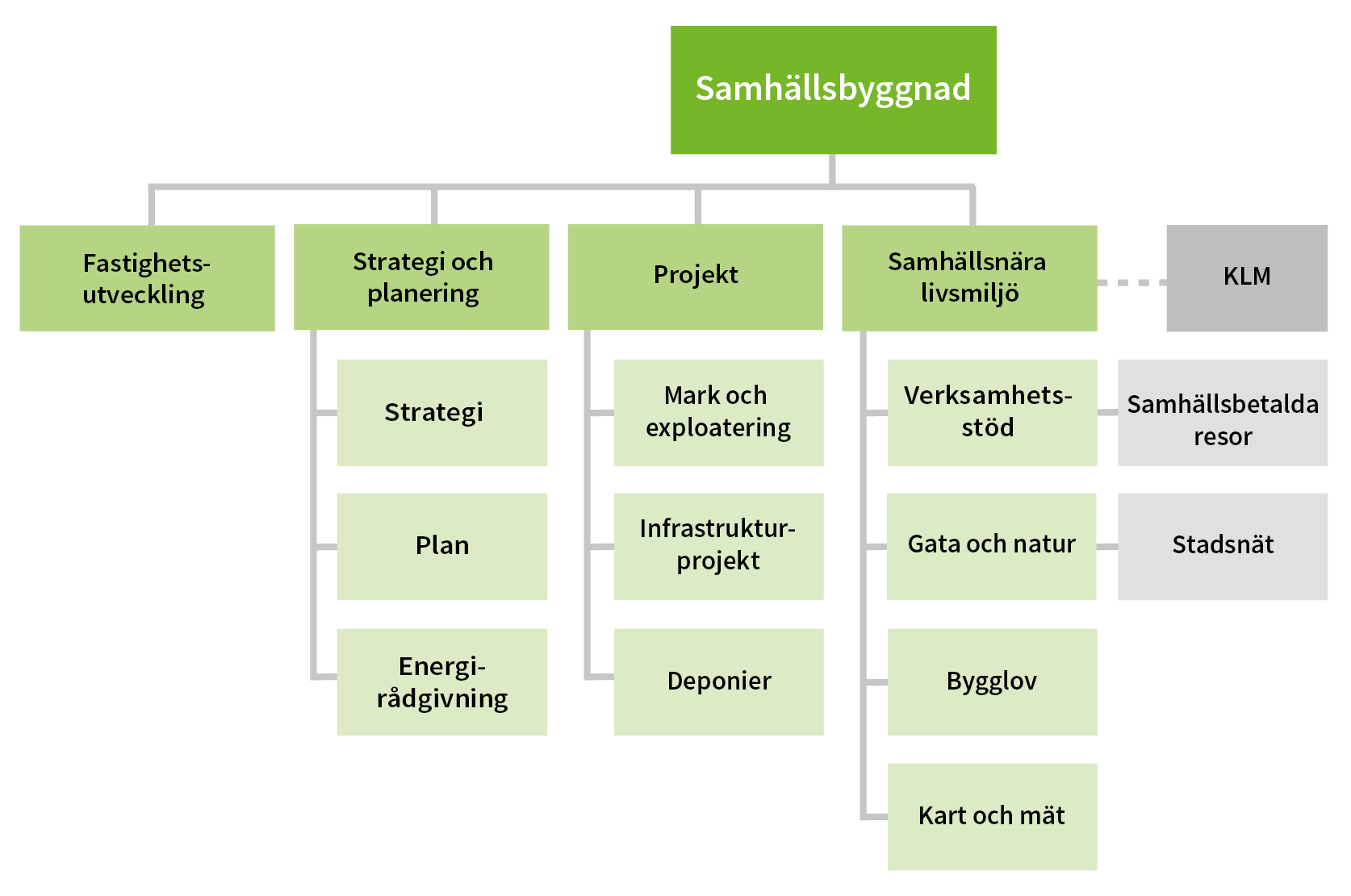 - ansvar för infrastruktur, till exempel gator, vägar, parker, elanläggningar, fibernät med mera